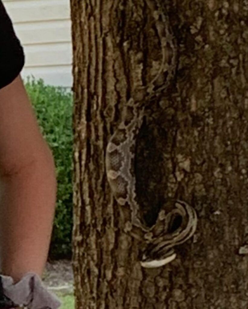 Varken Brooke eller ShaneJoy märkte något ovanligt när fotot togs. Det var först när de senare granskade bilden som de insåg att något oväntat och skrämmande hade smugit sig in i bakgrunden. Där, i hörnet av bilden, slingrade en orm sig nedför trädet bredvid trappan. Det var en chockerande upptäckt som fick deras hjärtan att slå lite snabbare.